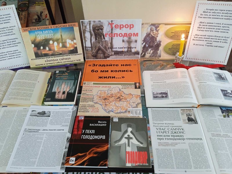 В читальній залі бібліотеки до Дня пам’яті жертв голодомору підготовлена виставка-реквієм «Терор голодом», де представлена художня та періодична література, яка розкриває масштаб трагедії. Так, наприклад, книги Василя Василашко «У пеклі голодоморів» та Василя Барка «Жовтий князь» яскраво та точно відтворюють атмосферу 1932-1933 років.