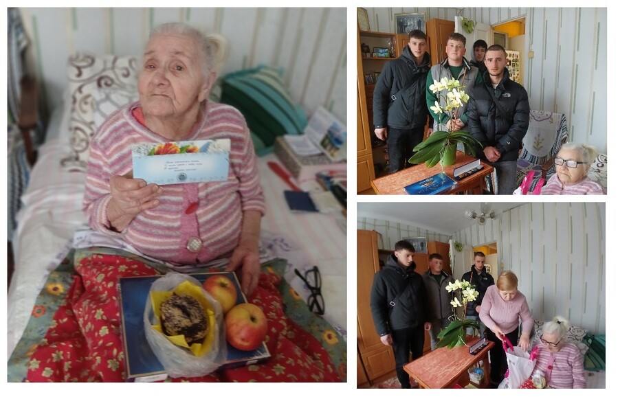 У День Всесвітньої доброти її завітали з гостинцями та подарунками студенти: Олександр Посторонко, Дмитро Шевченко та Станислав Чумаченко (куратор Г.О. Ніколаєва)