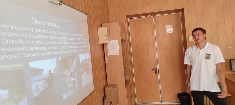 Під час практики студенти приймали участь в технічному обслуговуванні і ремонті техніки для проведення сільськогосподарських робіт, в тому числі в заміні рідин, заправки, заміна агрегатів, таких як коробка передач, двигунів, регулювання клапанів.