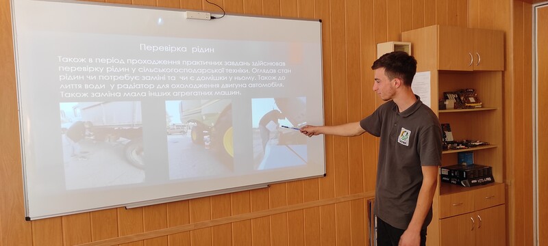Студенти навели огляд сільськогосподарської техніки, призначеної для окремих культур рослинництва, детально ознайомилися з технологічними картами проведення окремих операцій, дослідили доцільність та ефективність вибору сучасних технологій в окремих умовах.